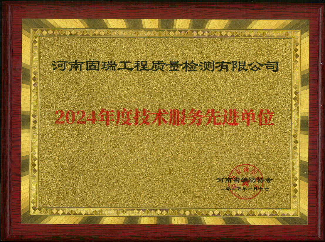 • 熱烈祝賀河南固瑞工程質量檢測有限公司榮獲河南省建設工程消防協會2024年度工作考核優秀單位!!!